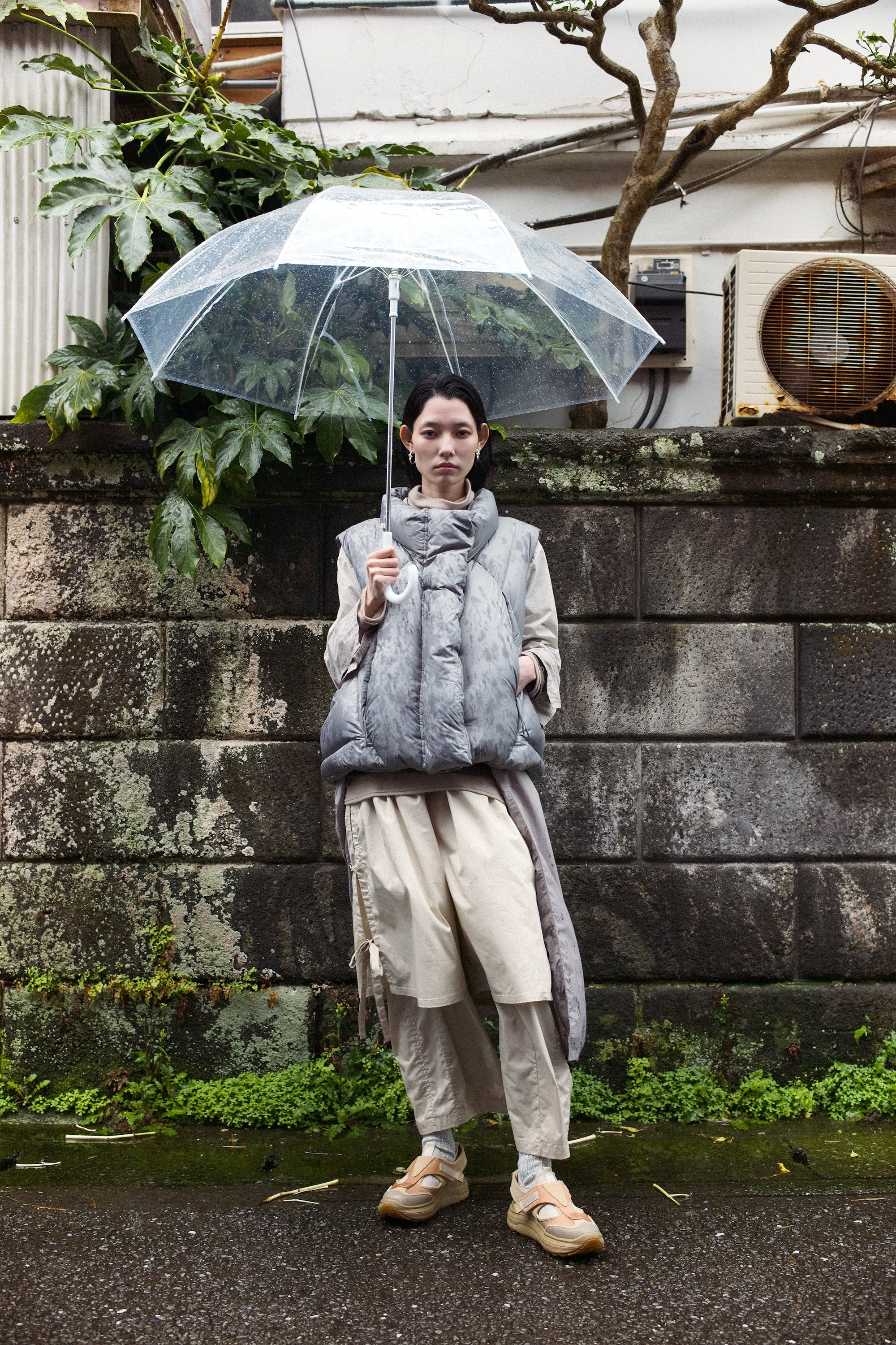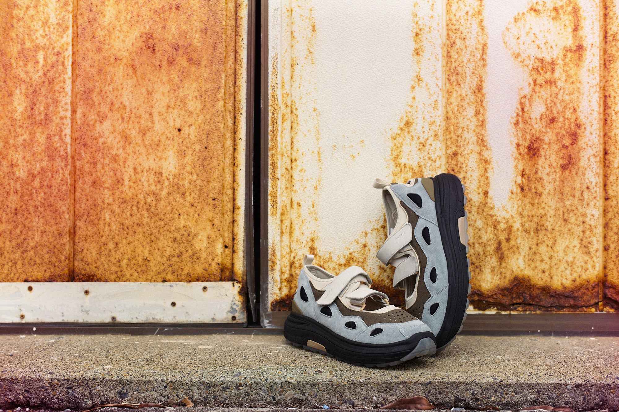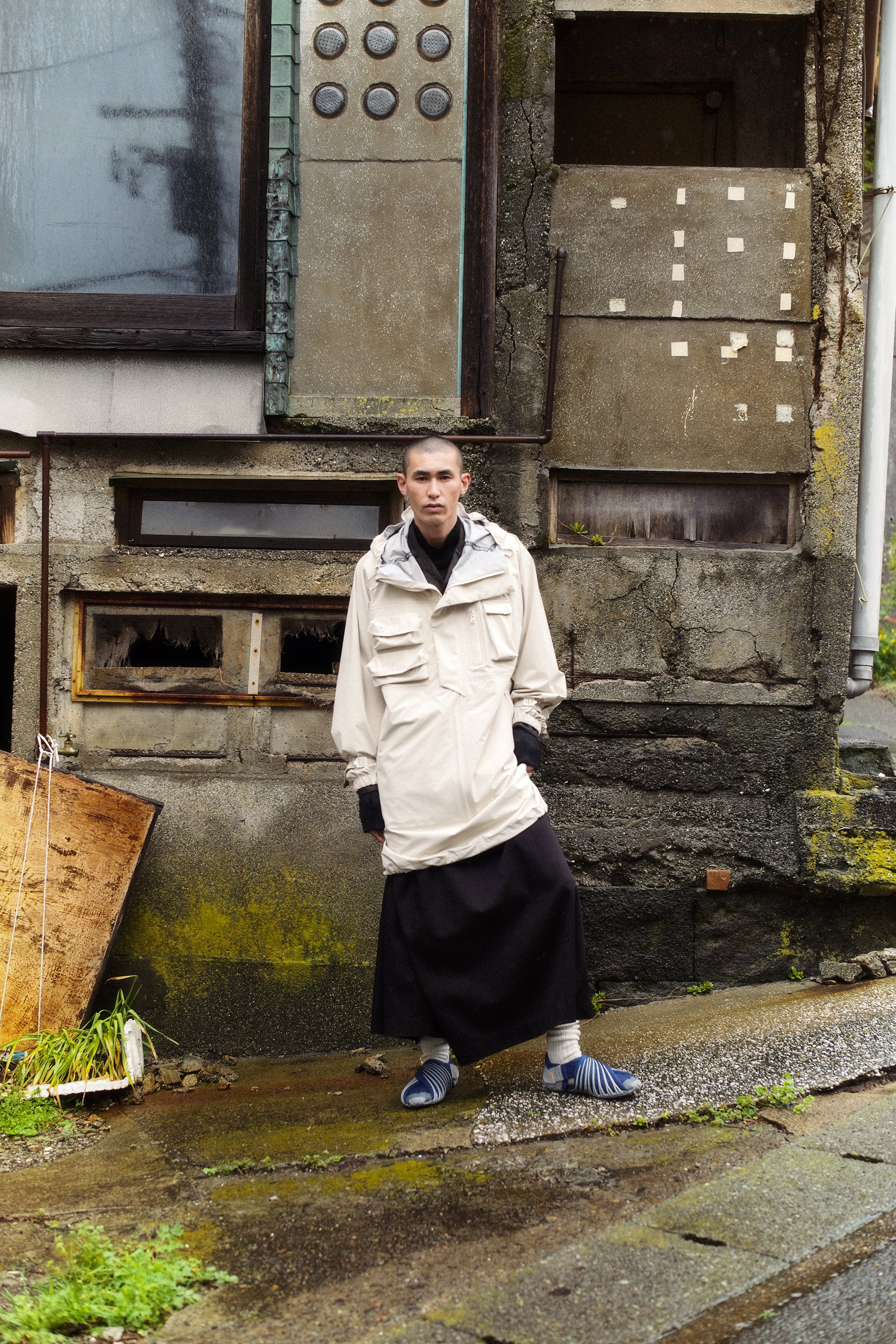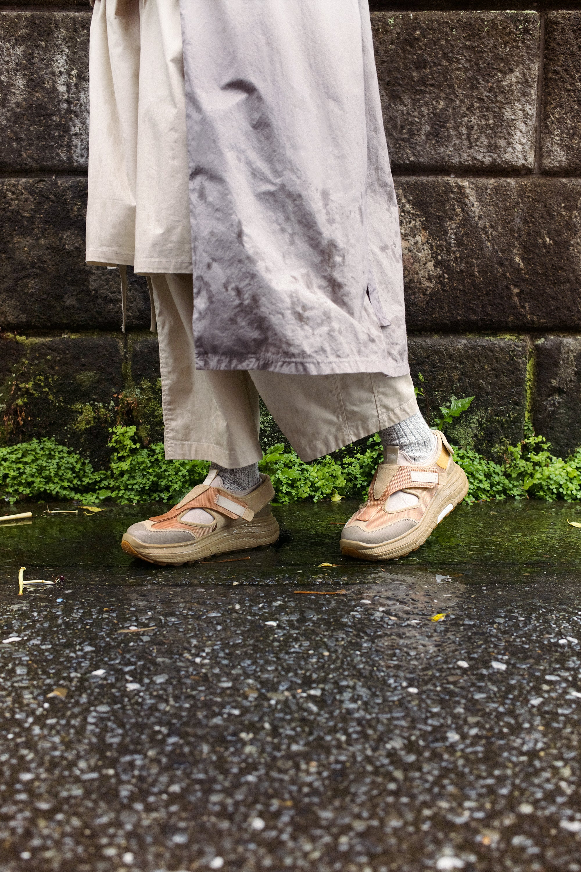 フォトグラファーのWill Goodanが三浦半島の雨の日に撮影したエディトリアルは、街と最南端の島、城ヶ島の広大な風景を背景にシューズを捉えている。