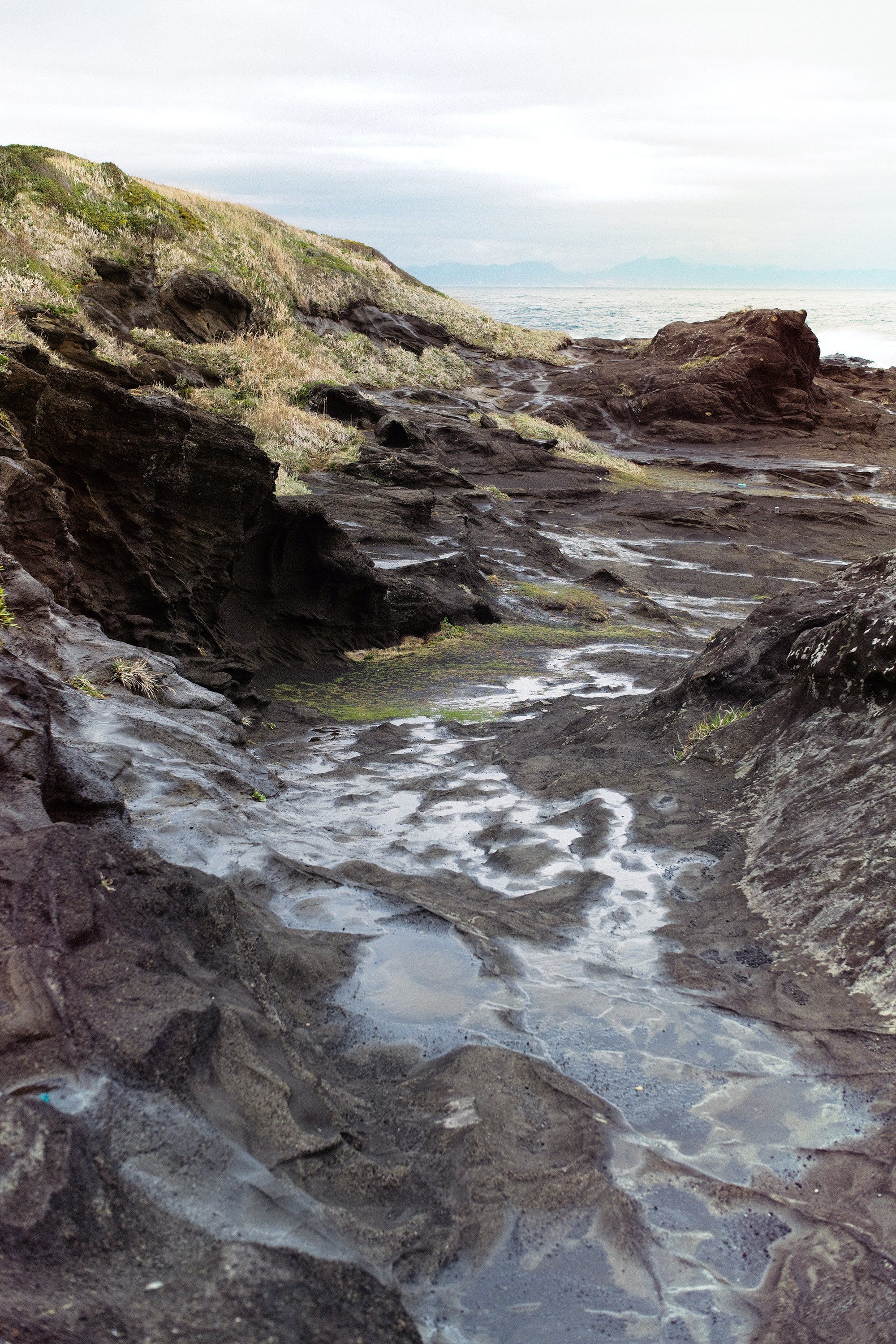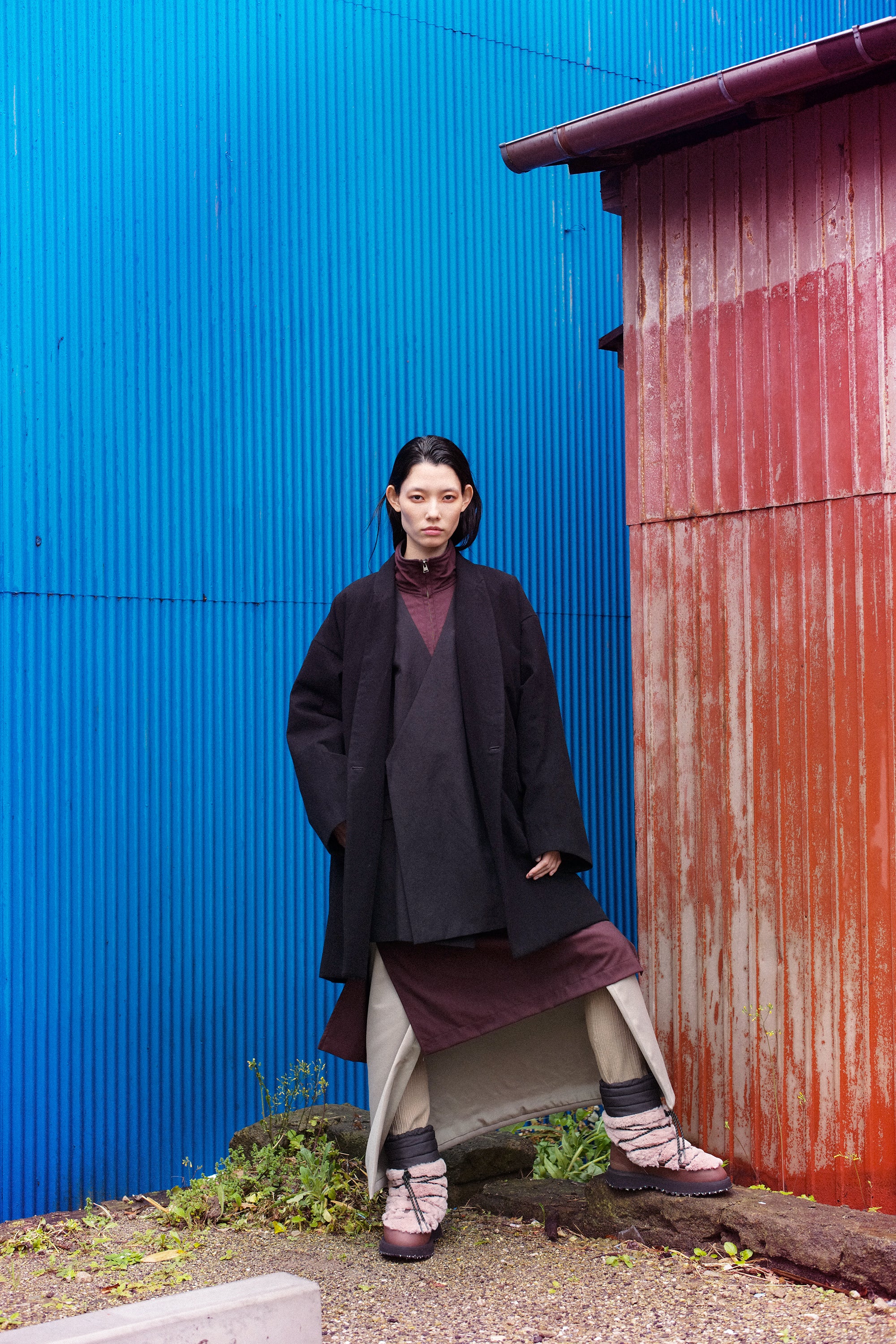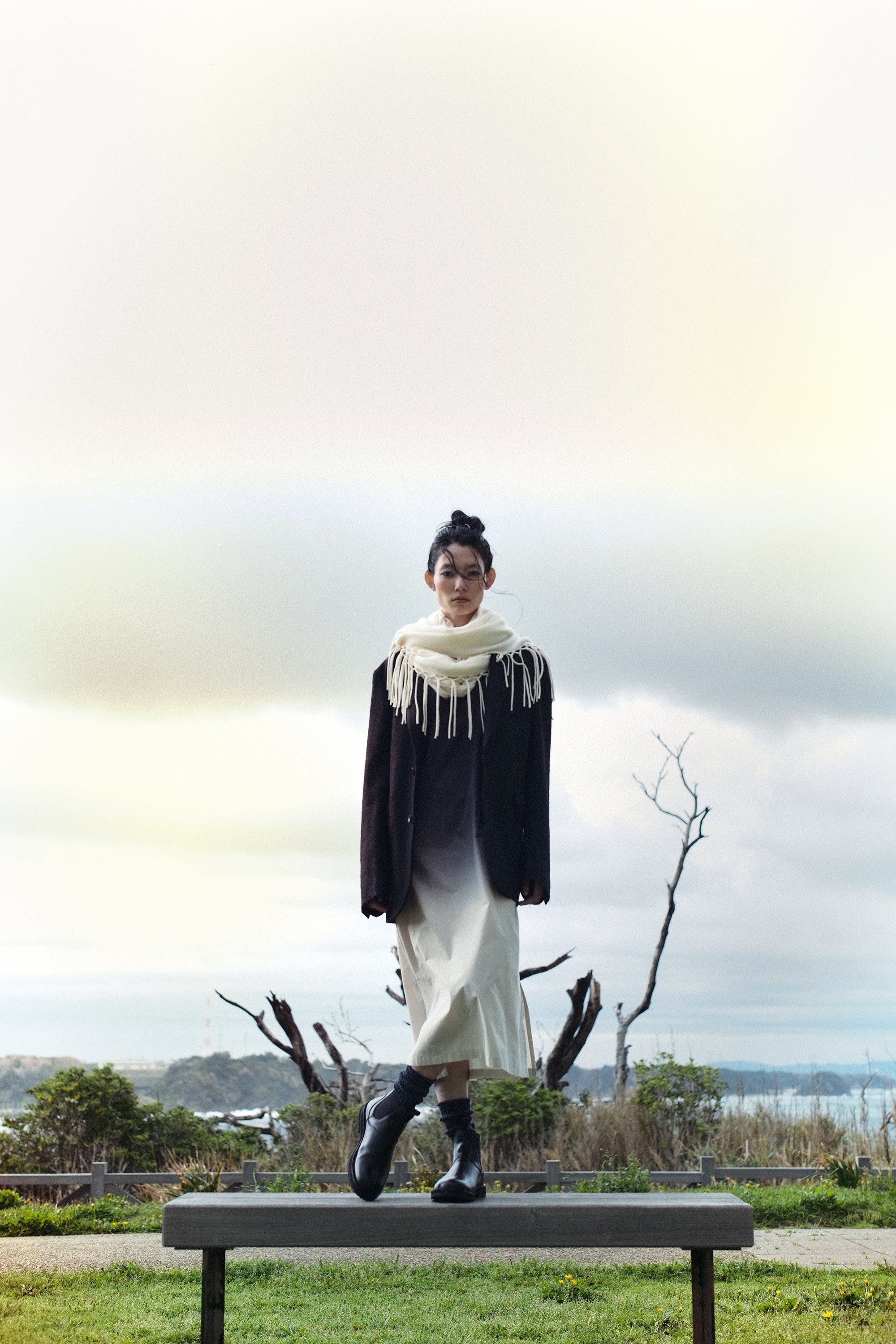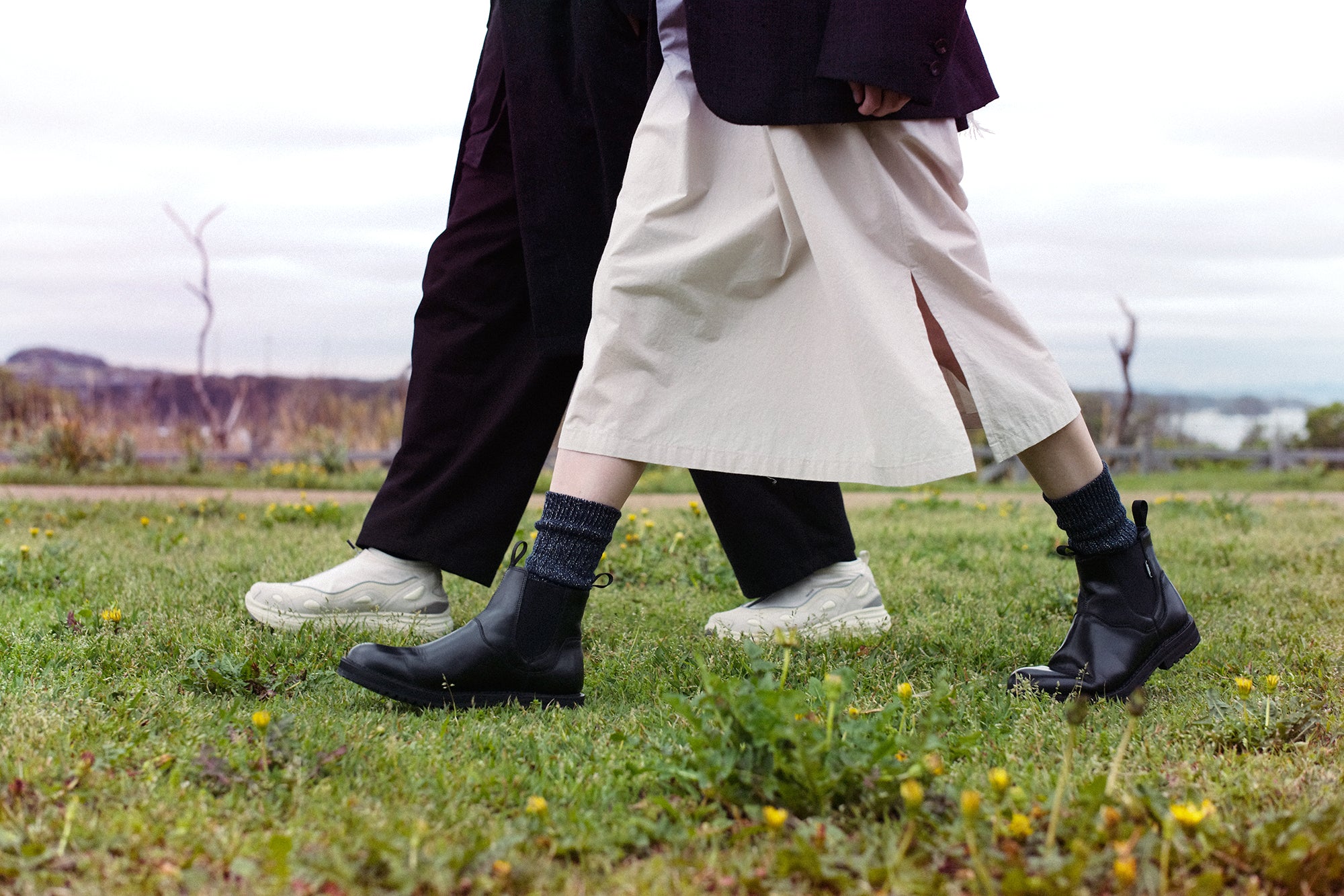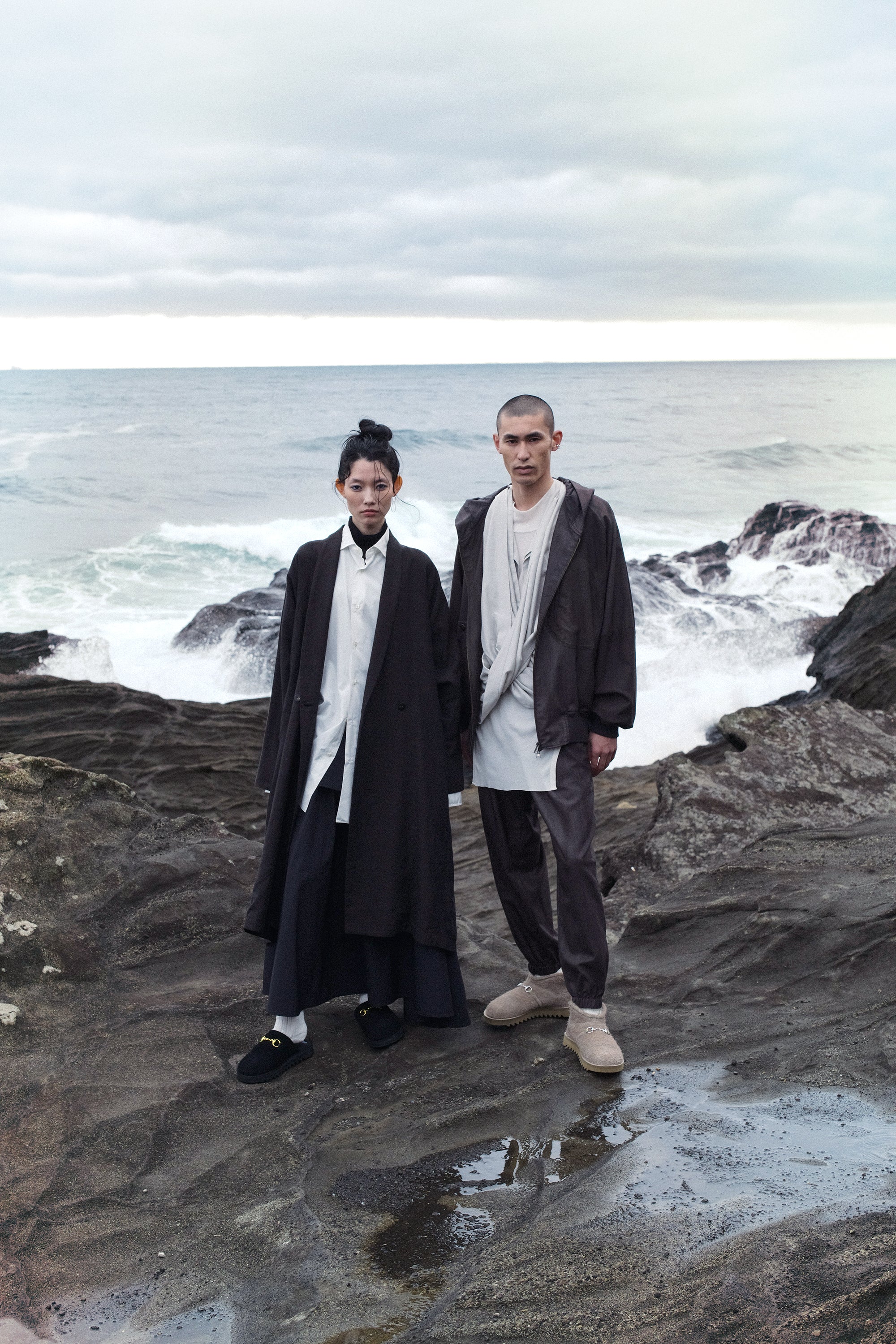 Shot by photographer Will Goodan on a rainy day in the Miura peninsula, the editorial captures the footwear across backdrops of the town and the vast landscapes of the southernmost island of Jogashima.